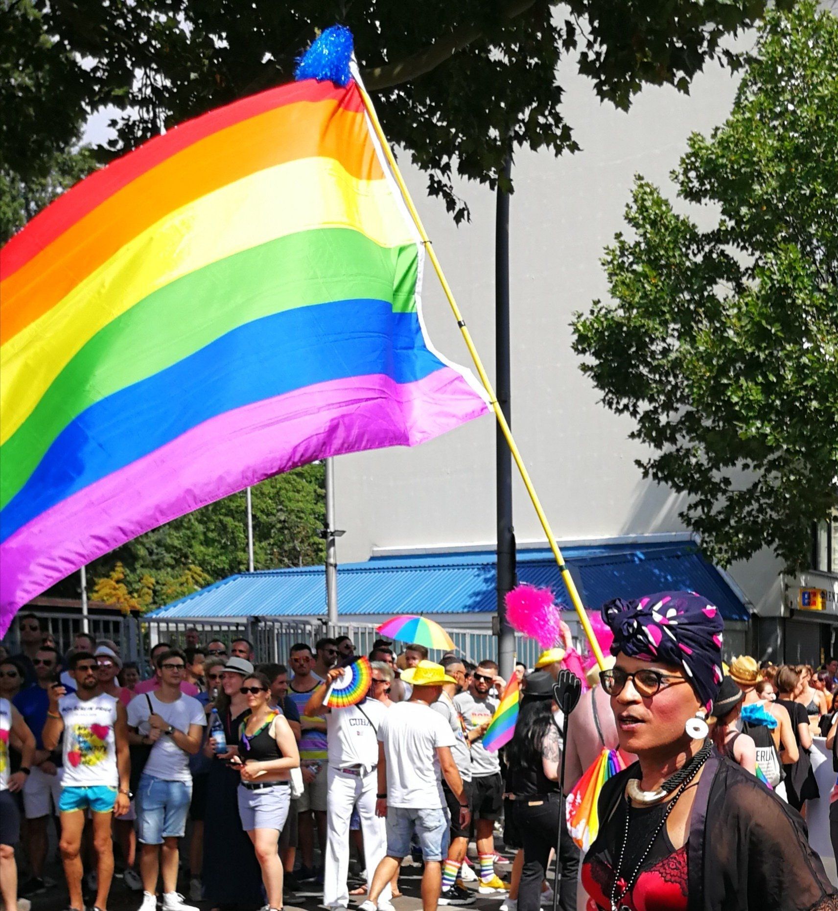 Flagge zu zeigen, ob wie hier beim Pride / Christopher-Street-Day oder „nur“ auf den Straßen des Alltages, bedeutet immer, Farbe zu bekennen.